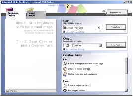يفتح مركز جهاز Lexmark متعدد الإمكانات على علامة التبويب المسح الضوئي والنسخ حيث يمكنك إنشاء نسخة من الصور الفوتوغرافية أو المستندات. للحصول على مزيدٍ من المعلومات، انظر إنشاء نسخة. |