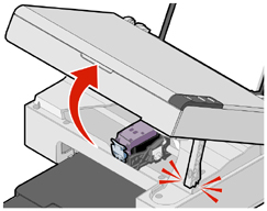 Pokud není zařízení All-In-One právě v činnosti, nosič tiskových kazet se automaticky přesune a zastaví v zaváděcí poloze.
