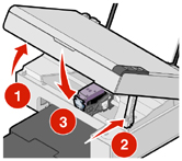 - Stiskněte páčku kazety a zvedněte úchyty.