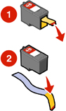 - Při instalaci nové tiskové kazety odstraňte nálepku a průhlednou pásku na dně a zadní části kazety.
