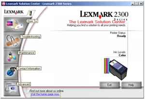 Otevření okna Středisko řešení Lexmark 2300 Series (LSC):