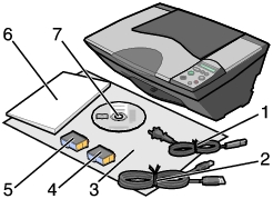 V krabici jsou spolu s vaším zařízením All-In-One tyto položky: