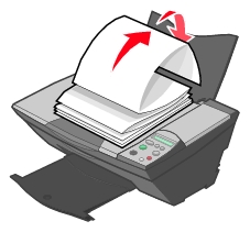 - Založte papír svisle tak, aby se dotýkal pravého okraje podpěry papíru.