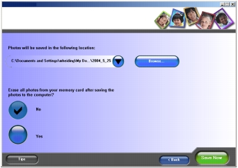 اتبع الإرشادات التي تظهر على الشاشة لتحديد مكان حفظ الصور.