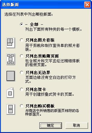 - 点击“改变上面列出的版面种类”,然后选择您希望使用的版面:图片套装、剪贴簿页面、无边界、贺卡、或购买模板。
