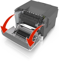从打印机控制面板,触摸 来清除消息并继续打印。对于非触摸屏的打印机型号,请选择下一步 >清除卡纸,请按“确定”,然后按 来确认。