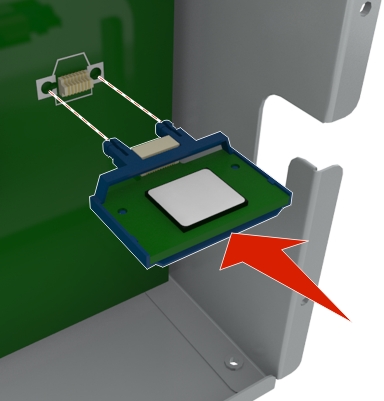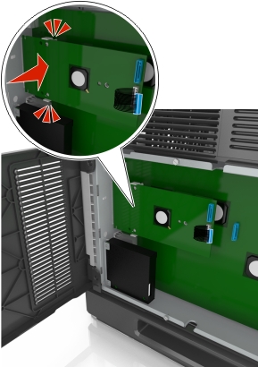 将内存卡笔直推入连接器中,然后将卡朝着控制器板墙推,直到它发出咔嗒一声,卡入到位。