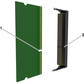 将内存卡上的槽口(1)与连接器上的凸脊(2)对齐。