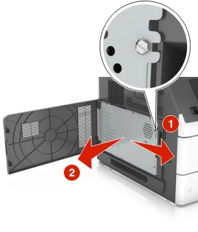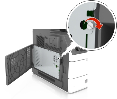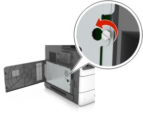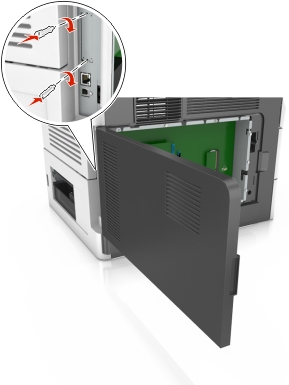 | 当心—电击危险: 如果您在设置完打印机后访问控制器主板或者安装可选的硬件或内存设备,请在继续操作之前先关闭打印机电源并从电源插座中拔掉电源线。如果您还有其他设备连接在打印机上,也应关闭它们的电源并拔掉所有连接到打印机上的电缆。 |