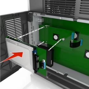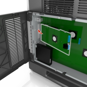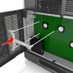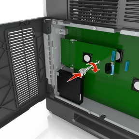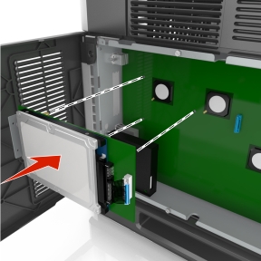 | 注意: 如果当前已安装了可选的 ISP,那么打印机硬盘必须安装在 ISP 上。 |