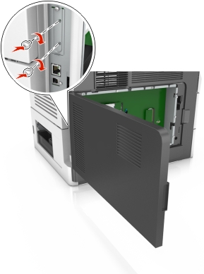 | 警告—可能的损坏: 控制器板电子组件容易被静电损坏。在接触任何控制器板电子组件或连接器之前请先触摸一下打印机上的金属物。 |