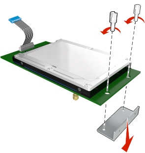 使用提供的两个螺钉以连接打印机硬盘固定板。