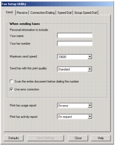 Questa utilità consente di regolare le impostazioni di invio e ricezione dei fax. Una volta salvate, le impostazioni vengono applicate a ogni fax inviato o ricevuto. È inoltre possibile utilizzare questa utilità per creare o modificare la lista di selezione rapida.
