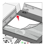 Hinweis: Legen Sie keine Postkarten und Fotokarten, kein Fotopapier oder kleine Bilder in den automatischen Dokumenteinzug ein. Legen Sie diese Objekte mit der bedruckten Seite nach unten auf das Scannerglas. Stellen Sie sicher, dass das Objekt in der oberen linken Ecke anliegt.