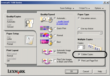 - Aktivieren Sie das Kontrollkästchen Kopien sortieren.