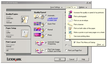 - Højreklik på Lexmark 810 Series, og vælg Udskriftsindstillinger.