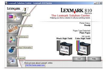 Lexmark 810 Series Løsningscenter er en værdifuld kilde til oplysninger.