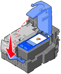 - Setzen Sie die schwarze Tintenpatrone bzw. die Foto-Tintenpatrone in den linken Schlitten ein. Setzen Sie die Farb-Tintenpatrone in den rechten Schlitten ein.