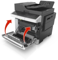 | VORSICHT – HEISSE OBERFLÄCHE: Das Innere des Druckers kann sehr heiß sein. Lassen Sie heiße Komponenten stets zuerst abkühlen, bevor Sie deren Oberfläche berühren, um Verletzungen zu vermeiden. |