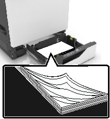 Flexione, airee y alise los bordes del papel antes de cargarlo.