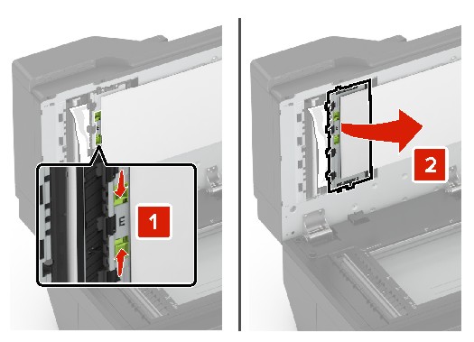 Cierre la puerta E y la cubierta del escáner.