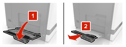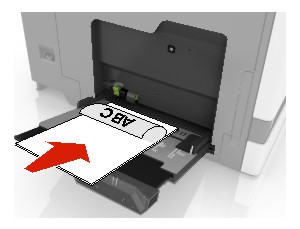 Cargue el papel, las transparencias y las tarjetas con la cara de impresión hacia abajo e introduciendo primero el borde superior.