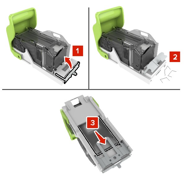| Nota: No inserte las grapas que se salieron del cartucho. |