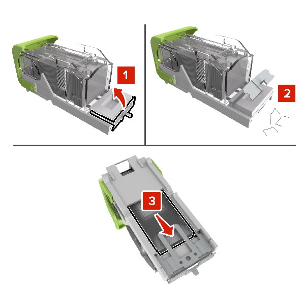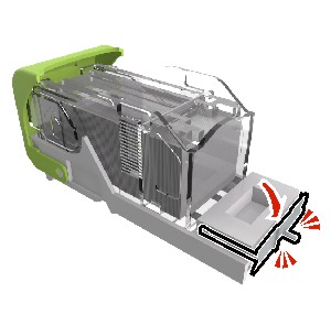 Abra la protección de grapas y, a continuación, retire las grapas sueltas.