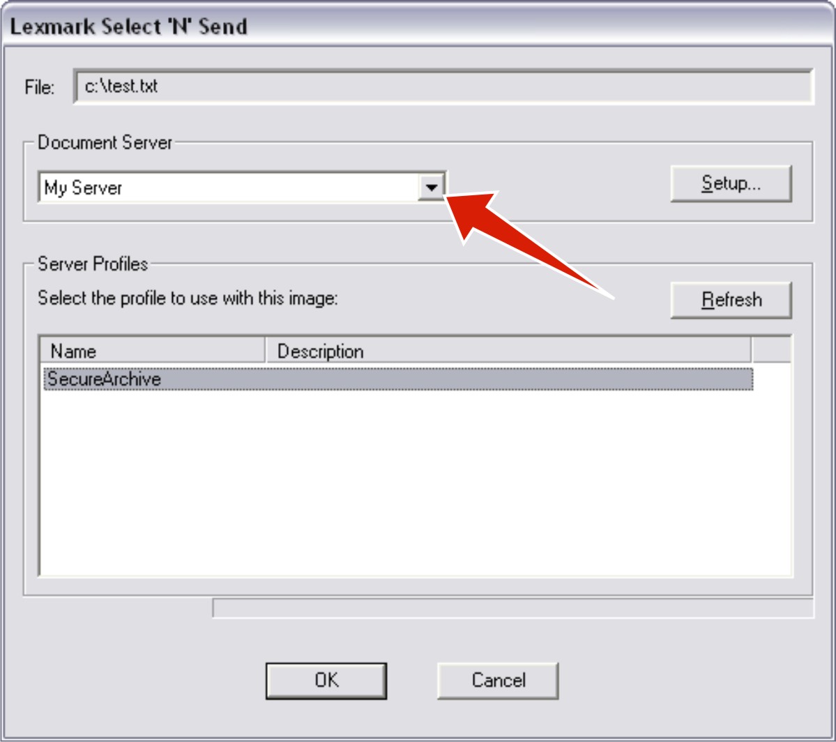 From the Lexmark Select'N'Send window, select a document server.