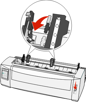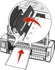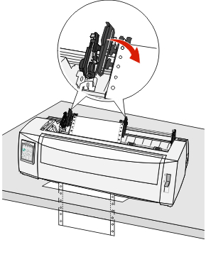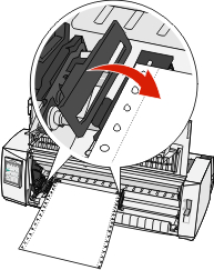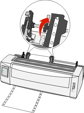 Open the left and right tractor doors, and then place the paper holes over the second or third pins of the tractor unit.
