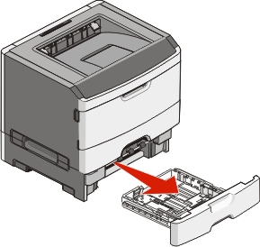 Se Legge utskriftsmateriale i standardskuffen for 250 ark for mer informasjon om å montere en skuff. En tilvalgsskuff monteres på samme måte som standardskuffen.